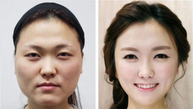 شکل صورتهای انسان بین صورتهای گرد، بیضی، مربعی و قلبی شکل متفاوت است و چهارمی یکی از مشهورترین علائم زیبایی در کوریای جنوبی است، تا حدی که تعداد زیادی از زنان برای به دست آوردن چهرهای به شکل قلب تحت عمل جراحی زیبایی قرار میگیرند. علی رغم این واقعیت که جراحی مورد نیاز برای این کار بسیار پیچیده است و در چند مرحله انجام میشود، و علی رغم اثرات منفی آن، از جمله مشکل خوردن غذاهای جامد، که نیاز به جویدن قوی دارد، و در نتیجه از بین رفتن برخی از استخوانهای صورت و مجسمه سازی استخوان چانه باز هم زنان کوریا صورتشان را قلبی میکنند تا زیبا به نظر برسند.
