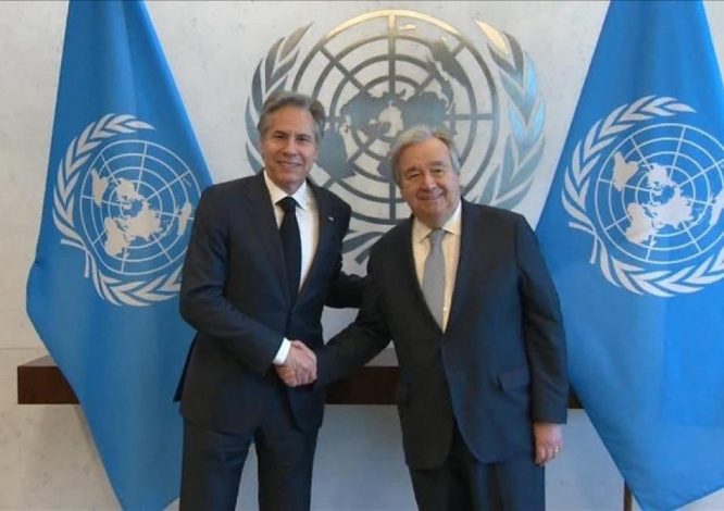 بلینکن با بیان اینکه او و گوترش از نزدیک در مورد افغانستان نیز کار میکنند، تاکید کرد: «ما در حال کار روی وضعیت گستردهتر انسانی و اقتصادی و نگرانی عمیق بسیاری از کشورها در مورد اقدامات طالبان برای انکار حقوق زنان و دختران هستیم. سازمان ملل در این راه پیشرو است».