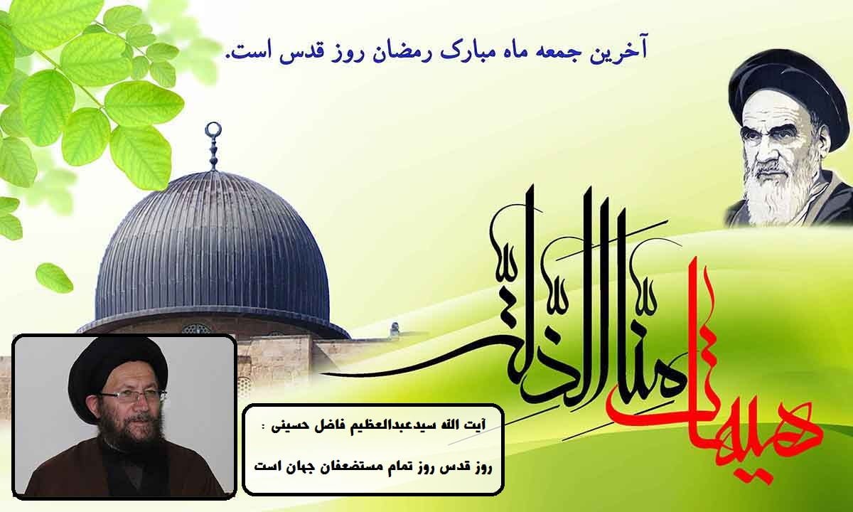 آیت الله سیدعبدالعظیم فاضل حسینی، با بیان اینکه روز قدس روز همه مسلمانهاست، تصریح کرد : همه کشورها و ملتهای اسلامی باید بیدار شوند و متحدانه و یکصدا فریادشان را بلند کنند تا وحدت و اتحاد اسلامی را به نمایش بگذارند و نقشه های دشمنان و توطئه های آنان را نقش برآب کنند.