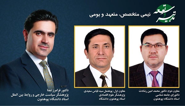 پوهنمل سید قیاس سعیدی، استاد دانشگاه و پژوهشگر علوم اقتصادی به عنوان معاون اول و دکتور محمدامین رشادت، دکتورای جامعه‌شناسی و استاد دانشگاه به عنوان معاون دوم دکتور فرامرز تمنا برای انتخابات آینده ریاست جمهوری نیز ثبت‌نام کردند.