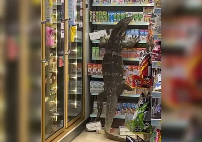 یک مارمولک عظیمالجثه با حضور در قفسههای یک فروشگاه در تایلند تعجب همگان را برانگیخت. این خلاصه داستان یک فیلم نیست و کاملا حقیقت دارد! وقتی این مارمولک به بالای قفسهها میرسد در پس زمینه صدای فریاد و خنده مردم را میشنویم. این ویدئو که تقریبا در تمام دنیا معروف شده است را یکی از شهروندان در شهر بانکوک تایلند به ثبت رسانده است.