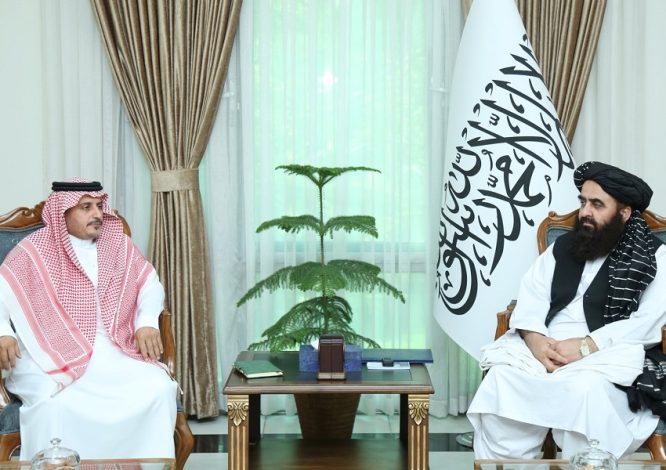 امیرخان متقی، سرپرست وزارت امور خارجه اداره طالبان، در دیدار با فیصل بن طلق البقمی، سفیر عربستان سعودی در کابل، درباره تحولات منطقه و نتایج گفتوگوهای اخیر میان افغانستان و پاکستان در شهر ارومچی چین بحث کرده است.