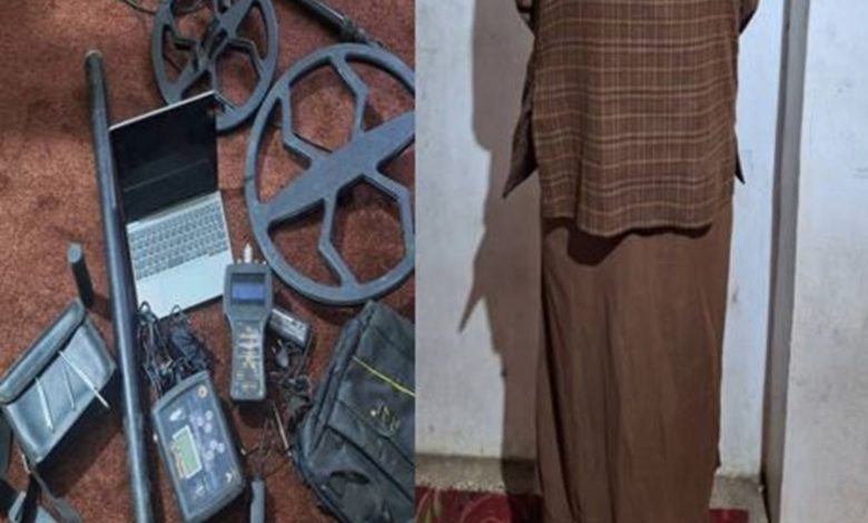 وفقاً للمعلومات المقدمة، تم ضبط جهاز للكشف عن المعادن، وجهاز كمبيوتر محمول، وعدد من الأدوات المتعلقة بالتنقيب بحوزة هذا الشخص خلال العملية.