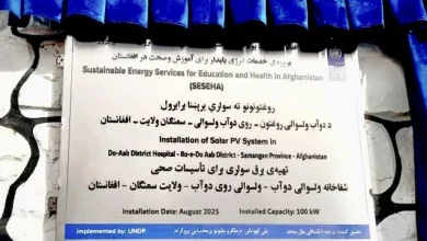افتتاح مشروع طاقة شمسية بقدرة 100 كيلوواط لمستشفى في سمنغان لتحسين الخدمات الصحية وتقليل الاعتماد على مصادر الطاقة غير المستقرة.