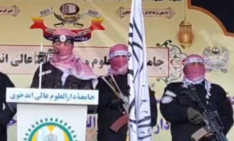 في مراسم تخرج مدرسة جهادية بمدينة أندخوي في ولاية فارياب، دعا شخص يُعرف باسم «أبو عبيدة» ويرتدي زي مقاتلي حماس، المشاركين إلى «القيام ضد الكفار». وقد عُقد هذا التجمع بحضور عدد من الطلاب والأنصار.