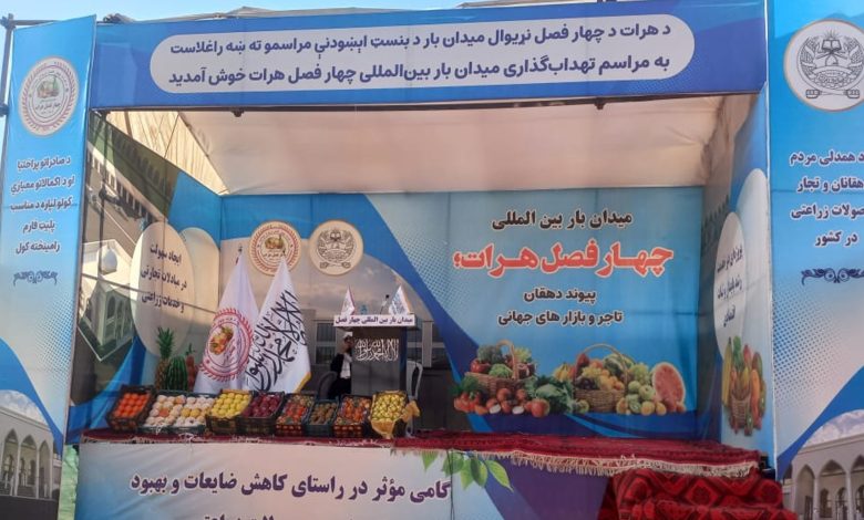 أعلنت الجهات المحلية لإدارة طالبان في هرات عن بدء أعمال بناء سوق جملة لأربع فصول بتكلفة خمسة ملايين دولار في هذه الولاية. ووفقًا لمكتب الإعلام في ولاية هرات، تم تصميم المشروع على مساحة 65 جريبًا من الأراضي، ومن المقرر الانتهاء منه خلال الستة أشهر القادمة.