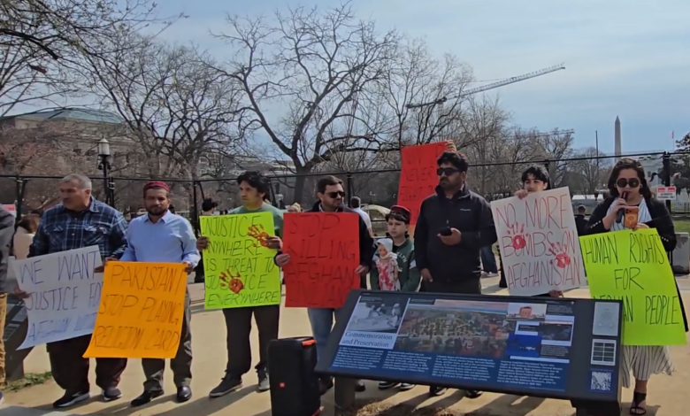 نظّم فرع الولايات المتحدة لحركة حماية البشتون (PTM) مسيرة في واشنطن العاصمة، أدان خلالها الهجمات الجوية التي شنّها الجيش الباكستاني على أفغانستان. وأعلن المنظّمون أن هذا التجمع جاء احتجاجاً على قصف مناطق في أفغانستان، مقتل المدنيين، واستمرار الهجمات عبر الحدود.
