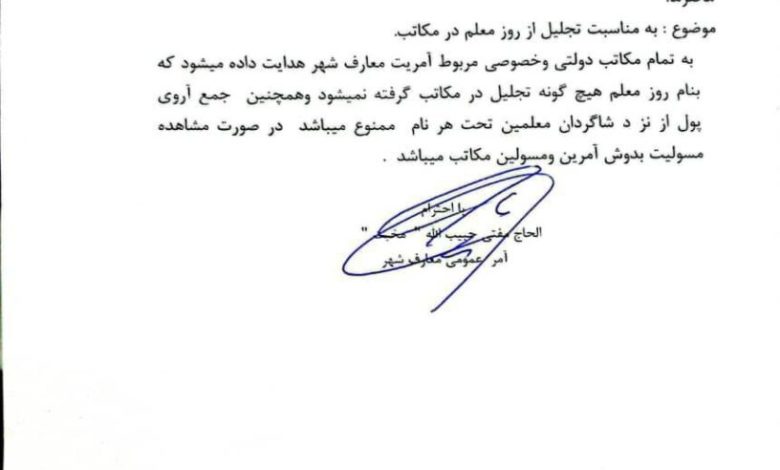ونص البيان الذي وزعته المديرية العامة للتربية في هرات بوضوح على أنه: «يُمنع تماماً إقامة أي احتفال تحت اسم يوم المعلم في المدارس». كما تم حظر جمع أي أموال من الطلاب أو المعلمين تحت ذريعة تنظيم احتفالات يوم المعلم، مع تحذير من أن المسؤولية ستقع على عاتق مديري المدارس في حال مخالفتهم لهذا القرار.