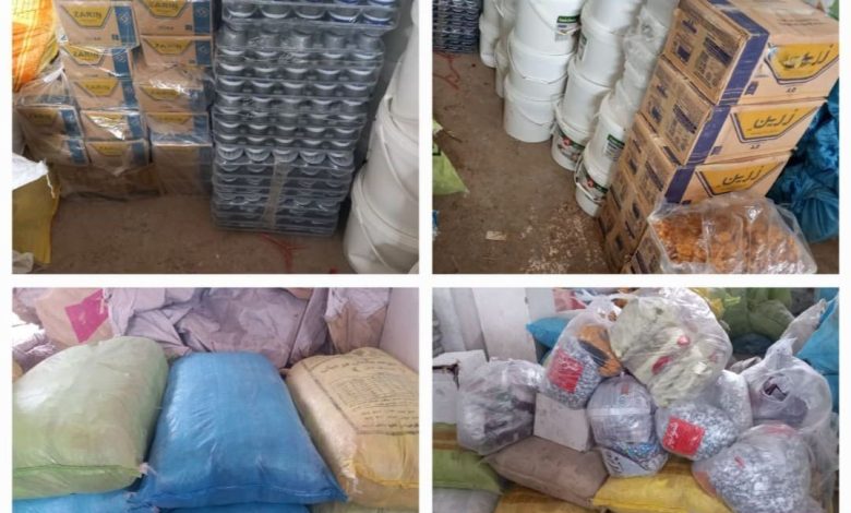 وتشمل قائمة المواد المضبوطة 47,400 كيلوغرام من الأدوية، 34 طناً من الأرز، 11 طناً من الشوكولاتة، 8 أطنان من الملعّى، مئات الكيلوغرامات من رب البندورة والمخللات والتمر والجبن، بالإضافة إلى 4 أطنان من الملابس الجديدة و2.5 طن من القماش. وأفادت وزارة المالية بأن هذه البضائع مع المتهمين تم تسليمهم إلى الجمارك المختصة لاتخاذ الإجراءات القانونية.