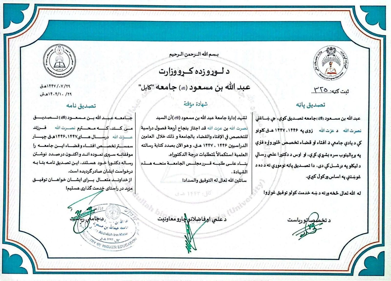 منابع میگویند نهادی وابسته به وزارت تحصیلات عالی اداره طالبان، بدون معیارهای روشن، به اعضای خود سند دکترا صادر میکند.
