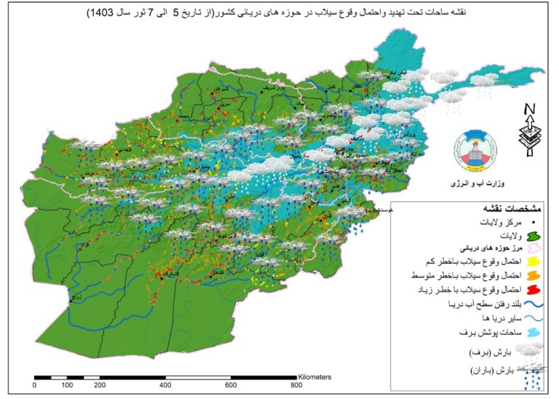 وزارت انرژی و آب طالبان اعلام کرده که احتمال بارندگی، برفباری نسبتاً شدید، وقوع سیلاب و بالا آمدن سطح آب دریاها در سه روز آینده در ساحات اکثر حوزههای دریایی افغانستان وجود دارد.