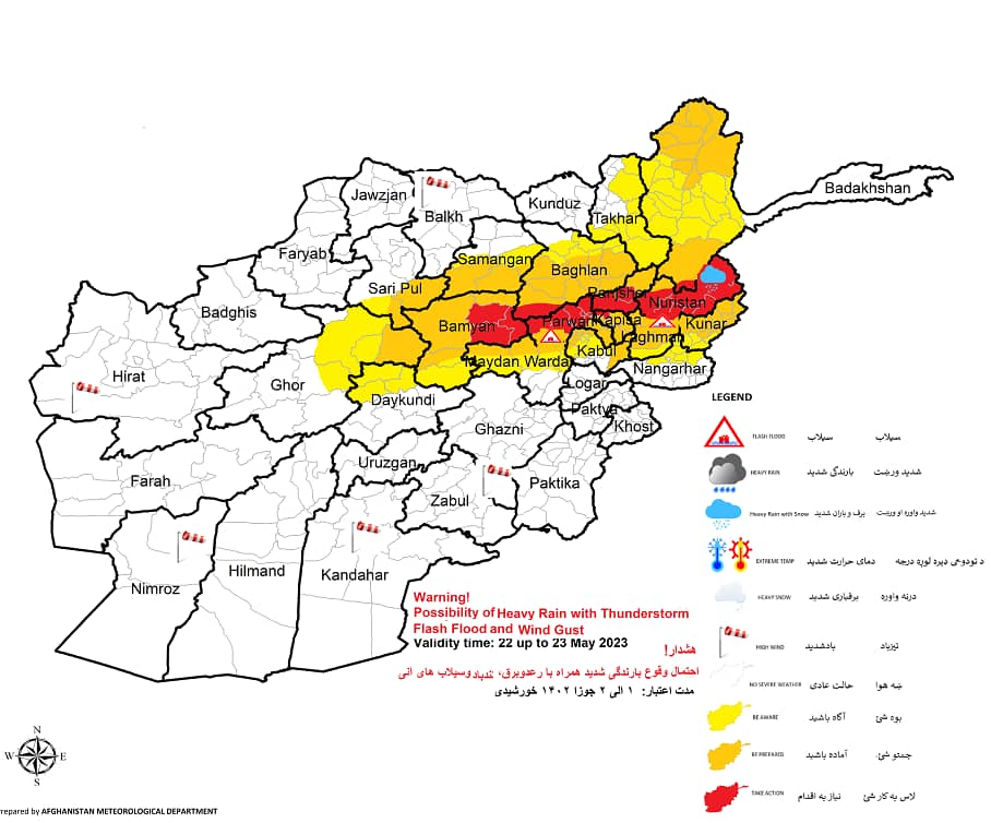ریاست هواشناسی تحت مدیریت طالبان از احتمال بارندهگی شدید همراه با رعدوبرق و سیلابهای آنی در ۱۷ ولایت کشور خبر داد.