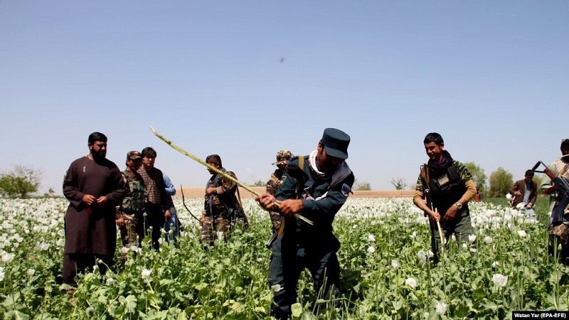 وزارت امور داخله طالبان میگوید که در ادامه روند تخریب مزارع کوکنار این بار پولیس مبارزه با مواد مخدر طی چندین عملیات جداگانه در ۶ ولایت بیش از ۸۰۰ جریب کشت زارهای کوکنار را تخریب نمودند.