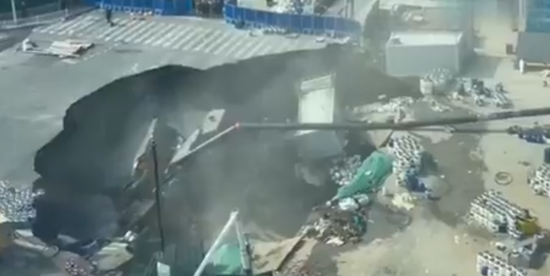 ایجاد فرورفتگی بزرگ زمین در شانگهای، بخشی از یک سرک اصلی این شهر را تخریب و مسیر رفتوآمد را مسدود کرد.