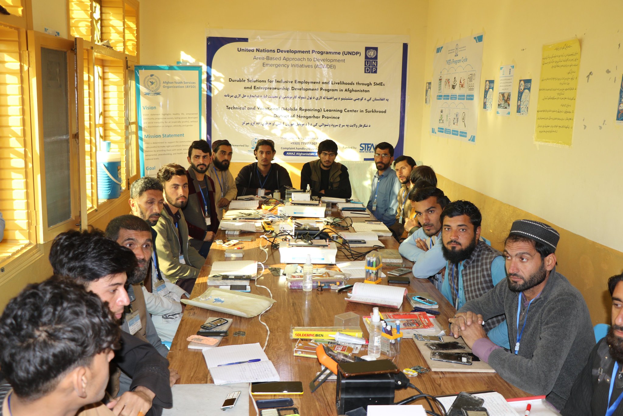 برنامه توسعه سازمان ملل از ۲۰ جوان در ولسوالی سرخرود ننگرهار برای فراگیری ترمیم موبایل و آغاز کار شخصی حمایت میکند.