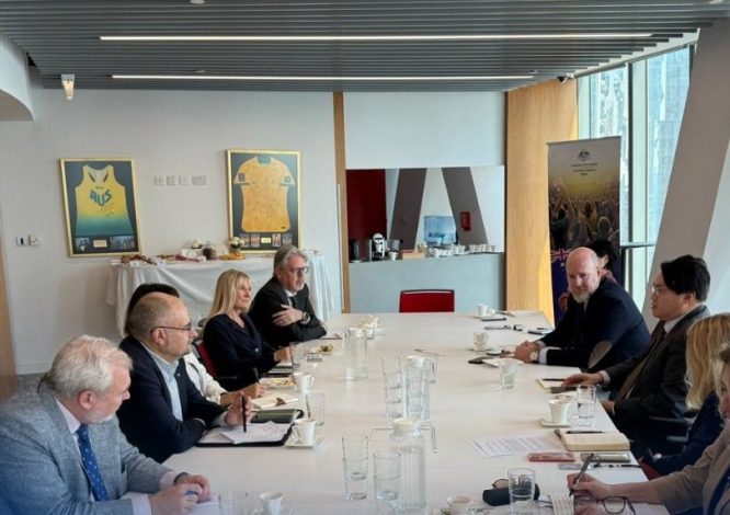 امندا مکگرگور، نماینده ویژه استرالیا برای افغانستان، با ژیل برتران، نماینده ویژه اتحادیه اروپا برای افغانستان، در شهر دوحه قطر دیدار کرد.