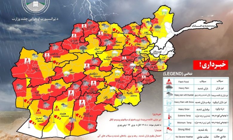The Meteorology Department of the Taliban’s Ministry of Transport and Aviation has announced that on Monday, April 6, all provinces in the country except Nuristan will experience rainfall, with the possibility of sudden flash floods in 33 provinces.