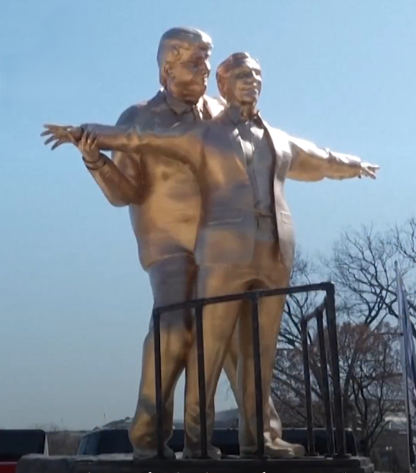 یک گروه هنری در امریکا با نصب مجسمهای از ترامپ و اپستین در نزدیکی کاخ سفید، خواستار توجه دوباره به پرونده اپستین شد.