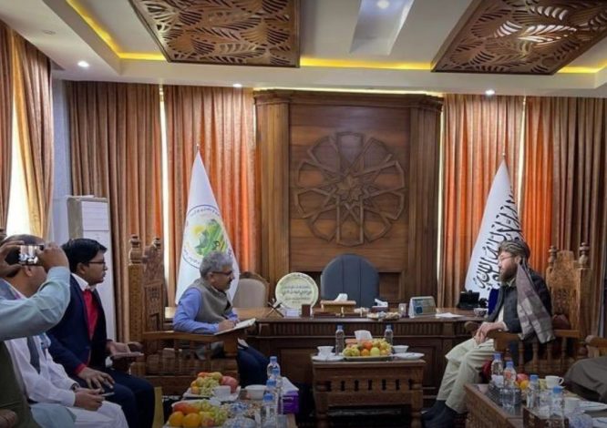بر بنیاد اعلام وزارت زراعت، آبیاری و مالداری اداره طالبان، مقامهای این اداره با کاردار سفارت هندوستان در کابل دیدار کرده و در این نشست روی گسترش همکاریهای مشترک بهویژه در عرصه زراعت صحبت کردهاند.