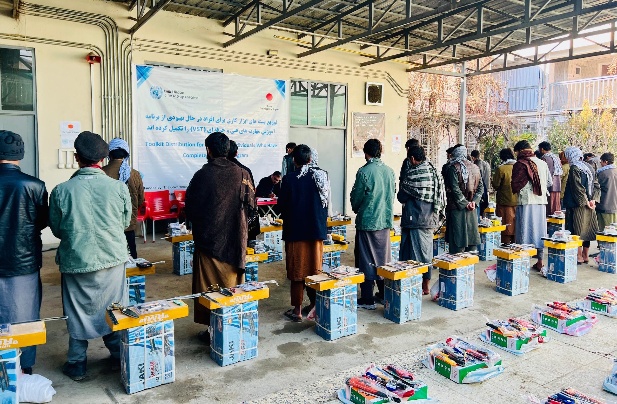 دفتر UNODC با پشتیبانی جیکا بستههای کاری حرفهای را به ۲۰۰ کارآموز در بدخشان توزیع کرد.