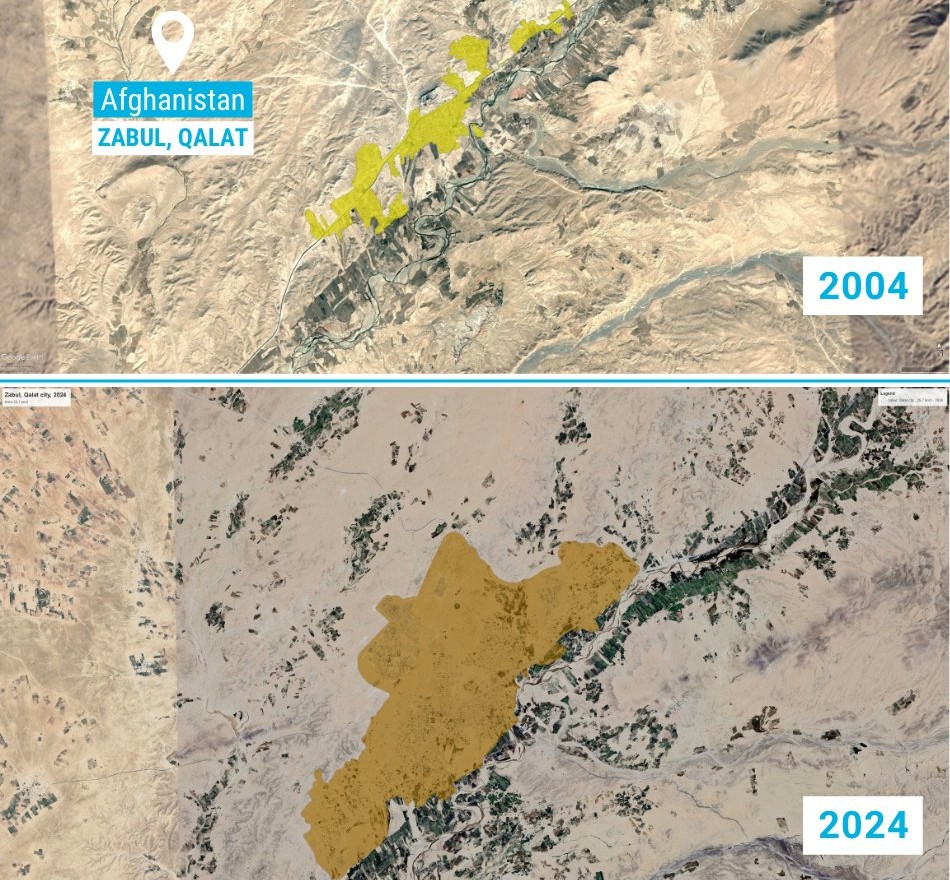 یونهبیتات از دگرگونی مرکز شهر قلات زابل میان سالهای ۲۰۰۴ تا ۲۰۲۴ خبر داده است.