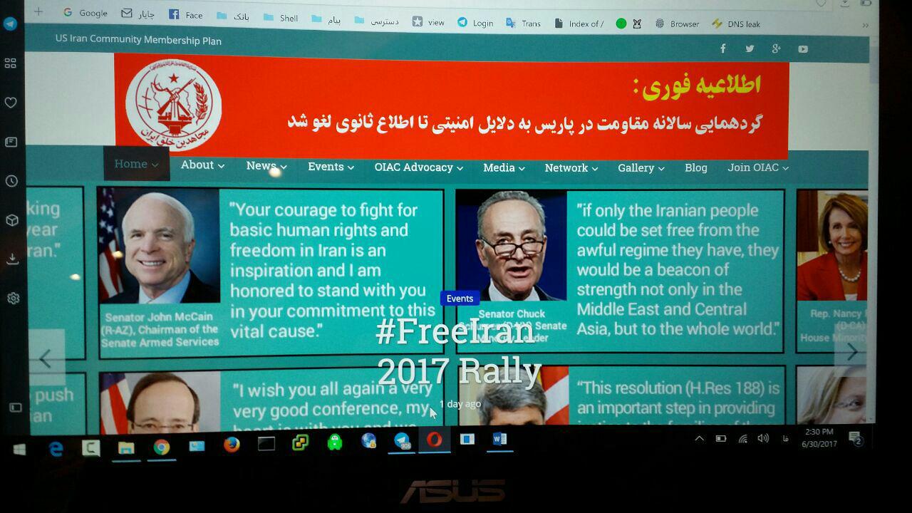 بر اساس اخبار واصله مبنی بر احتمال حمله تروریستی و به جهت حفظ جان و امنیت مهمانان عزیز و هواداران سازمان به توصیه ی پلیس فرانسه این همایش تا اطلاع ثانویه لغو می شود