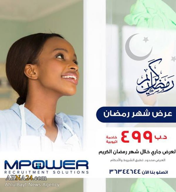 بحرین مانند بسیاری از دیگر کشورهای منطقه خلیج فارس، بخش بزرگی از نیروهای کارش را مهاجران دیگر کشورها به خصوص کشورهای فقیر آفریقایی و جنوب شرق آسیا تشکیل میدهند.