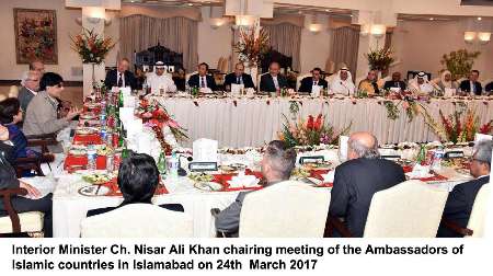 جمعی از سفرای کشورهای مسلمان مقیم اسلام آباد، روز گذشته با حضور در جلسه ای به میزبانی و ریاست وزیر داخله پاکستان، به اتفاق آرا برضرورت انجام اقدام های جدی علیه هرگونه سوء استفاده از شبکه های اجتماعی برای اهانت به مقدسات دین اسلام، تاکید کردند.