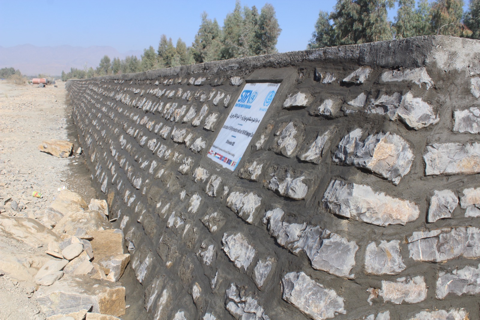 یونهبیتات با حمایت یک نهاد سازمان ملل، دیوار و کانال حفاظتی در بازار مکتب ولسوالی صبری خوست ساخت.