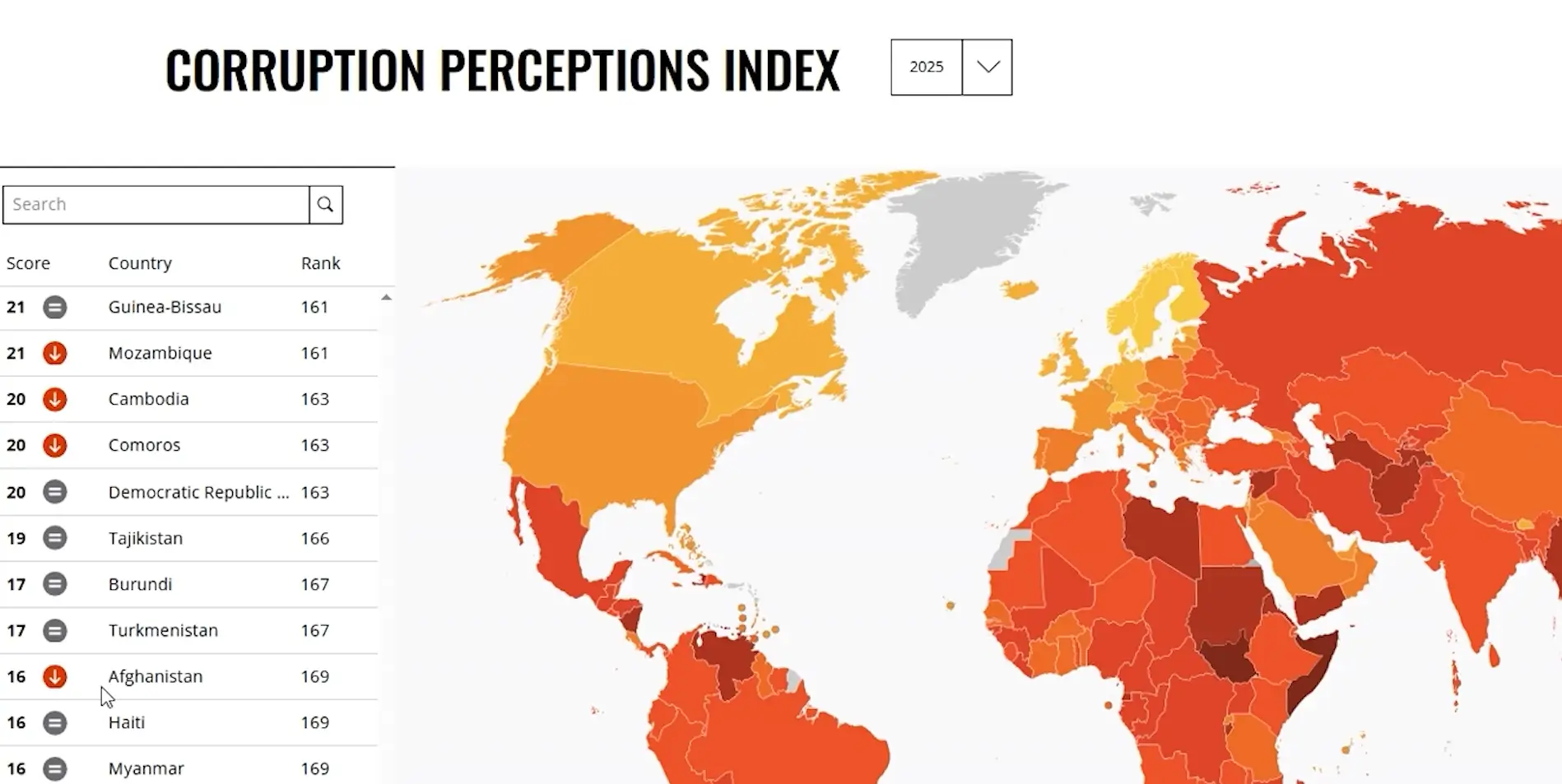 افغانستان در شاخص ادراک فساد ۲۰۲۵ با چهار پله سقوط، در جایگاه ۱۶۹ جهان قرار گرفت؛ اداره طالبان این گزارش را رد کرد.