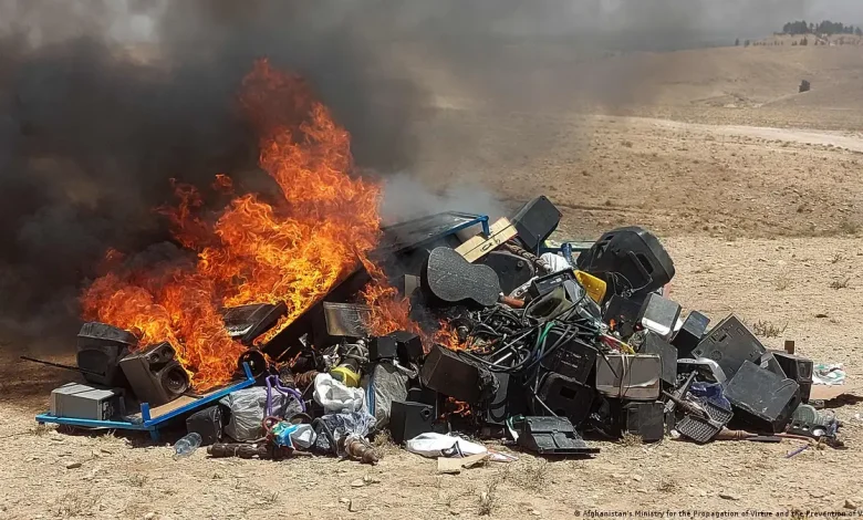 طالبانو په میدان وردګو کې د موسیقي وسایل او قلیانونه وسوځول