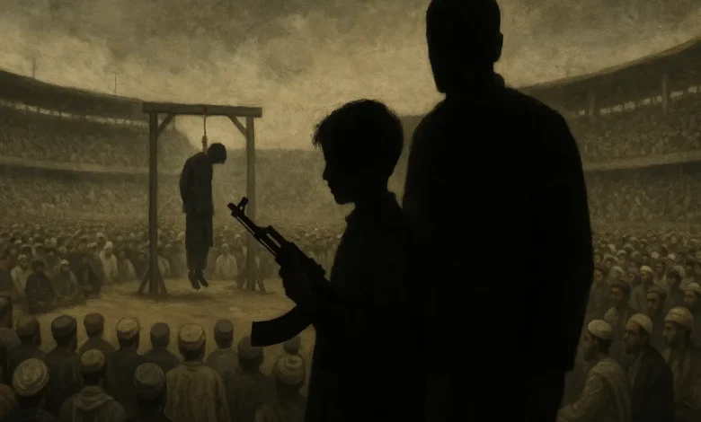 تيره اوونۍ (د قوس ۱۱مه نیټه) افغانستان يوه توره او وېروونکې ورځ تجربه کړه: هغه محکمه چې هدف يې د یو قاتل قصاص ګڼل کېده — هغه څوک چې تور پرې لګېدلی و چې د یوې کورنۍ ۱۳ غړي، په ګډون د يوې مور او ۹ ماشومانو، وژلي — د طالبانو له لوري په خوست ښار مرکزي لوبغالي کې عملي شوه. خو د ياد حکم اجرا بې ساري تکان‎وَړ او فاجعه‌بار بڼه لرله: وسله د یوه ۱۳ کلن هلک لاس ته وسپارل شوه، چې د وژل شوې کورنۍ له پاتې غړو څخه و، تر څو په ډزو سره دا حکم عملي کړي. دا ماشوم چې نه يوازې د خپل کورنۍ ويجاړېدو عيني شاهد و، بلکې اوس د يوې غټې غونډې پر وړاندې، د مرګ اجرا کوونکي رول ته واچول شو. د راپورونو له مخې، نږدې ۸۰ زره تنه — په کې کوچني ماشومان هم شامل و — دې صحنې ته نندارې ته ولاړ وو.