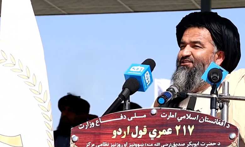 هغه په دې مراسمو کې ټینګار وکړ چې د «خلکو دفاع» او د «انتقام اخیستل» ځان ته شرعي فرض ګڼي. نوموړي پاکستان «بزدل دښمن» وباله او ادعا یې وکړه چې دغه هېواد په خپله تاریخي موده کې هېڅ جګړه نه ده ګتلې او تل یې د امریکا د رضایت لپاره پر افغانستان بریدونه ترسره کړي دي.