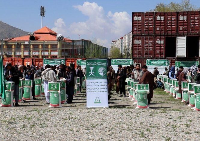 بنیاد خیریه ملک سلمان عربستان سعودی برای دو هزار خانواده نیازمند، بیجاشده داخلی و عودتکننده در شهر کابل بستههای مواد غذایی توزیع کرده است. این کمکها با همکاری تخنیکی «موسسه توحید» به خانوادههایی رسیده که به گفته مسئولان، در وضعیت دشوار معیشتی قرار دارند.