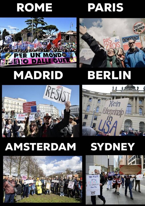 همزمان با این اعتراضات در آمریکا، شماری از شهروندان در کشورهای اروپایی از جمله ایتالیا، فرانسه، اسپانیا، آلمان و هلند و همچنان در استرالیا نیز گردهماییهایی برگزار کردند. شرکتکنندگان در این تجمعها نسبت به برخی سیاستهای اعلامشده از سوی رئیسجمهور آمریکا ابراز نگرانی کردهاند.