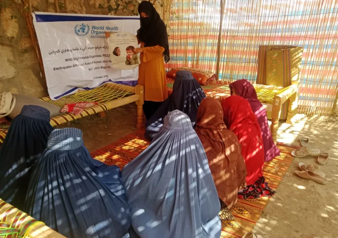 سازمان جهانی صحت (WHO) کمپاینی را برای آگاهیدهی عمومی در ولایتهای کنر و ننگرهار راهاندازی کرده است که هدف آن کاهش خطرات صحی در مناطق آسیبدیده از زلزله میباشد. در چارچوب این برنامه، ۳۰ تن از کارمندان آموزشدیده در بخش بسیج اجتماعی به ۲۰۷ قریه در این ولایتها مراجعه کرده و معلومات مهمی را با بیش از ۳۳ هزار تن از باشندگان شریک ساختند.
